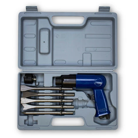 Equipé de 5 burins, le coffret burineur pneumatique avec accessoires HM9PCS prouve son efficacité et sa polyvalence quelque soit la surface travaillée.